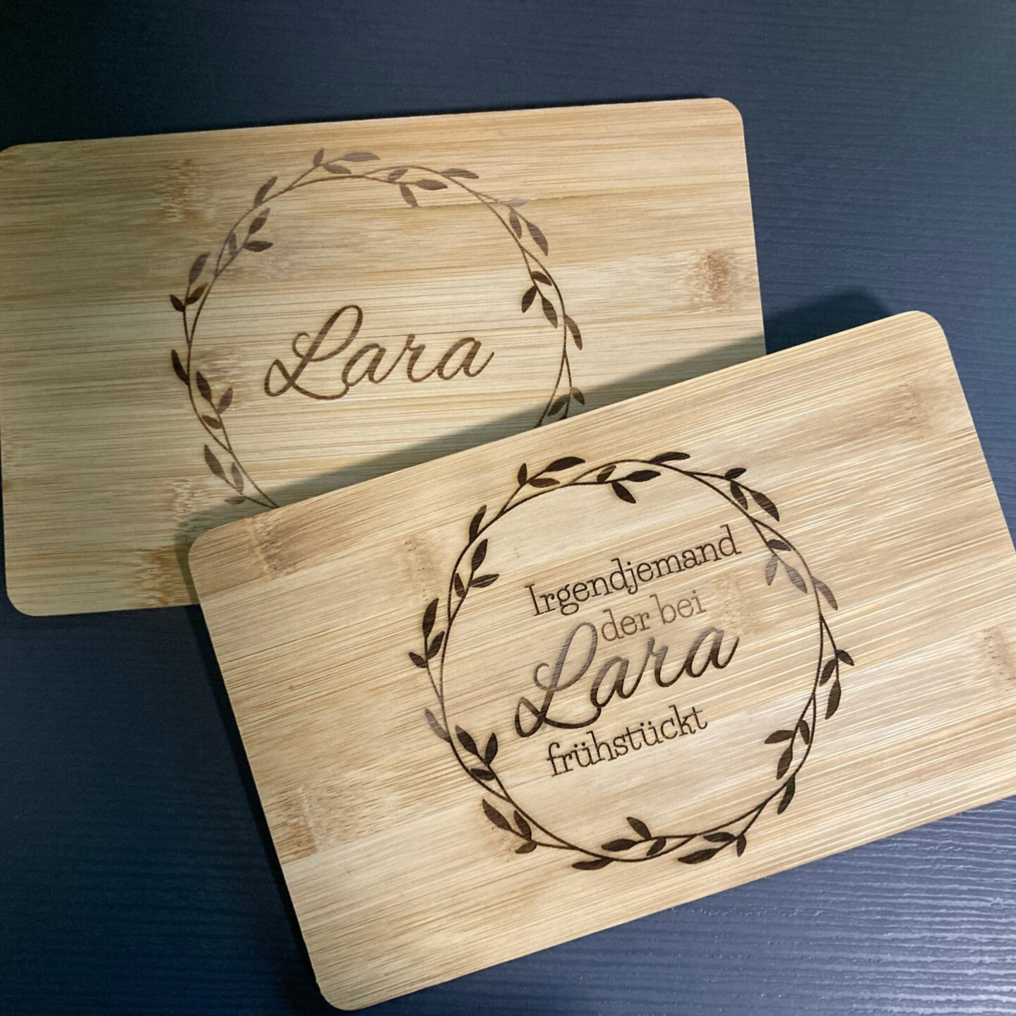 Personalisiertes Frühstücksbrett– mit Wunschname & Naturkranz