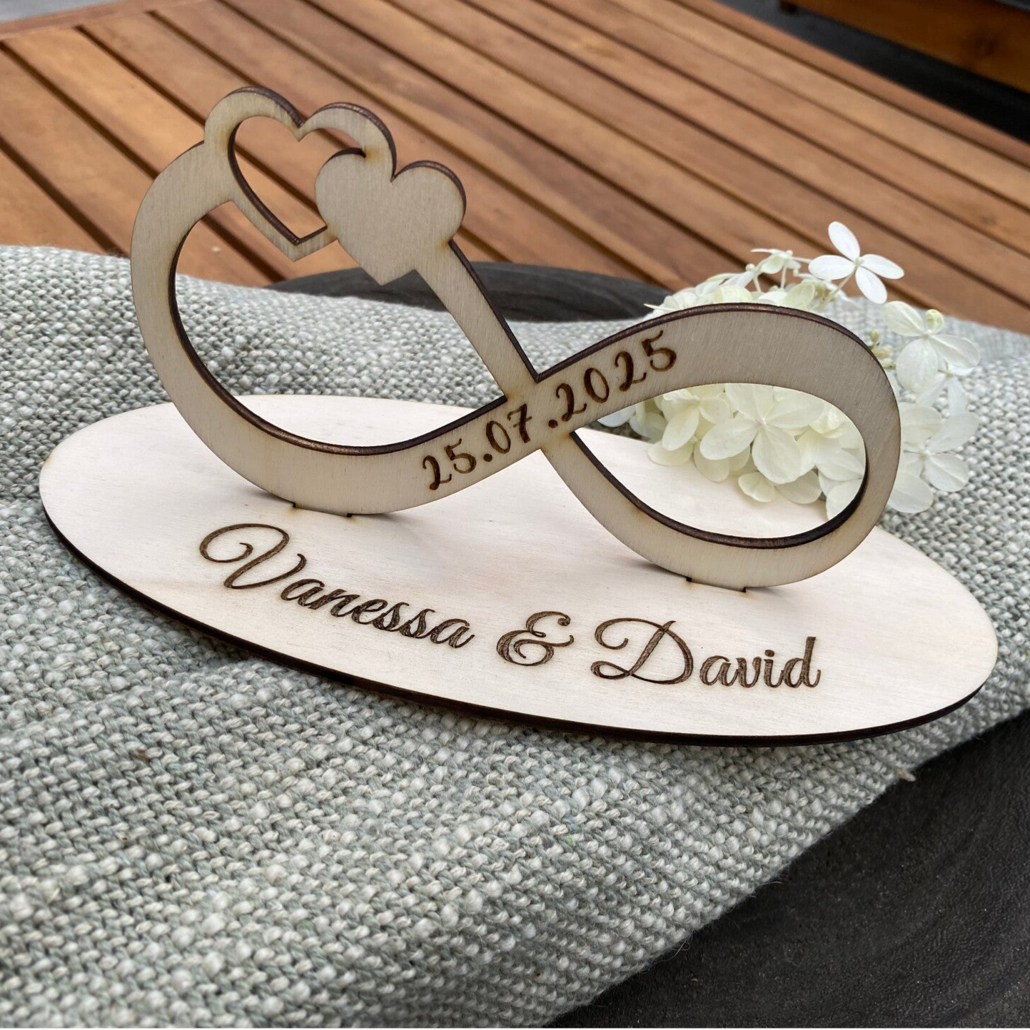 Ob als Hochzeitsgeschenk, zur Verlobung, für den Jahrestag oder als besonderes Highlight in deinem Zuhause – dieser Aufsteller ist ein echter Hingucker. Die Kombination aus dem zeitlosen Unendlichkeitszeichen und den verspielten Herzen macht ihn zu einem wunderschönen Ausdruck deiner