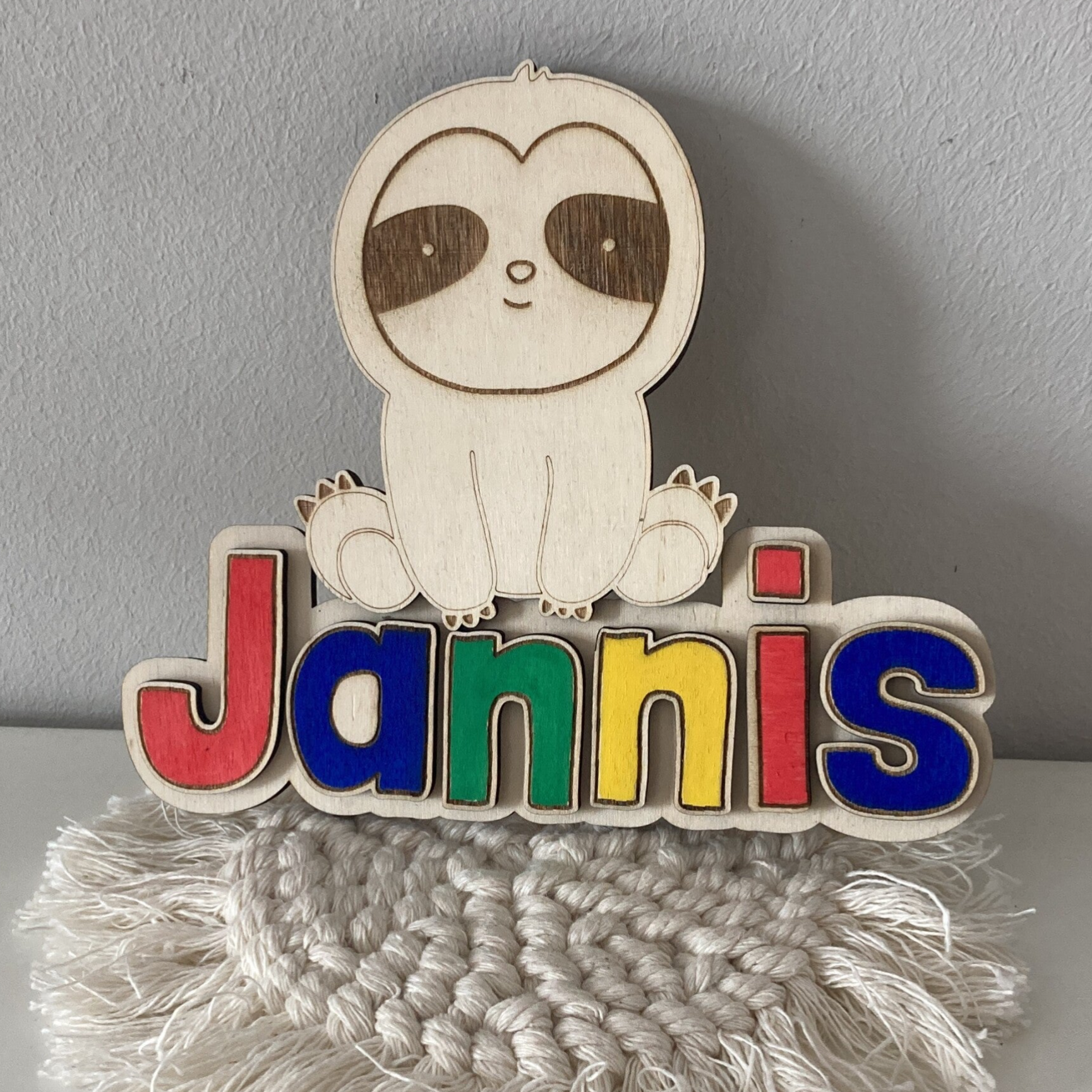 Unsere liebevoll gravierten Holzschilder mit niedlichem Faultier-Motiv sind das perfekte Geschenk zur Geburt, Taufe oder einfach als besondere Deko fürs Kinderzimmer. Jedes Schild wird individuell mit dem Wunschnamen personalisiert – auf Wunsch sogar in Farbe!