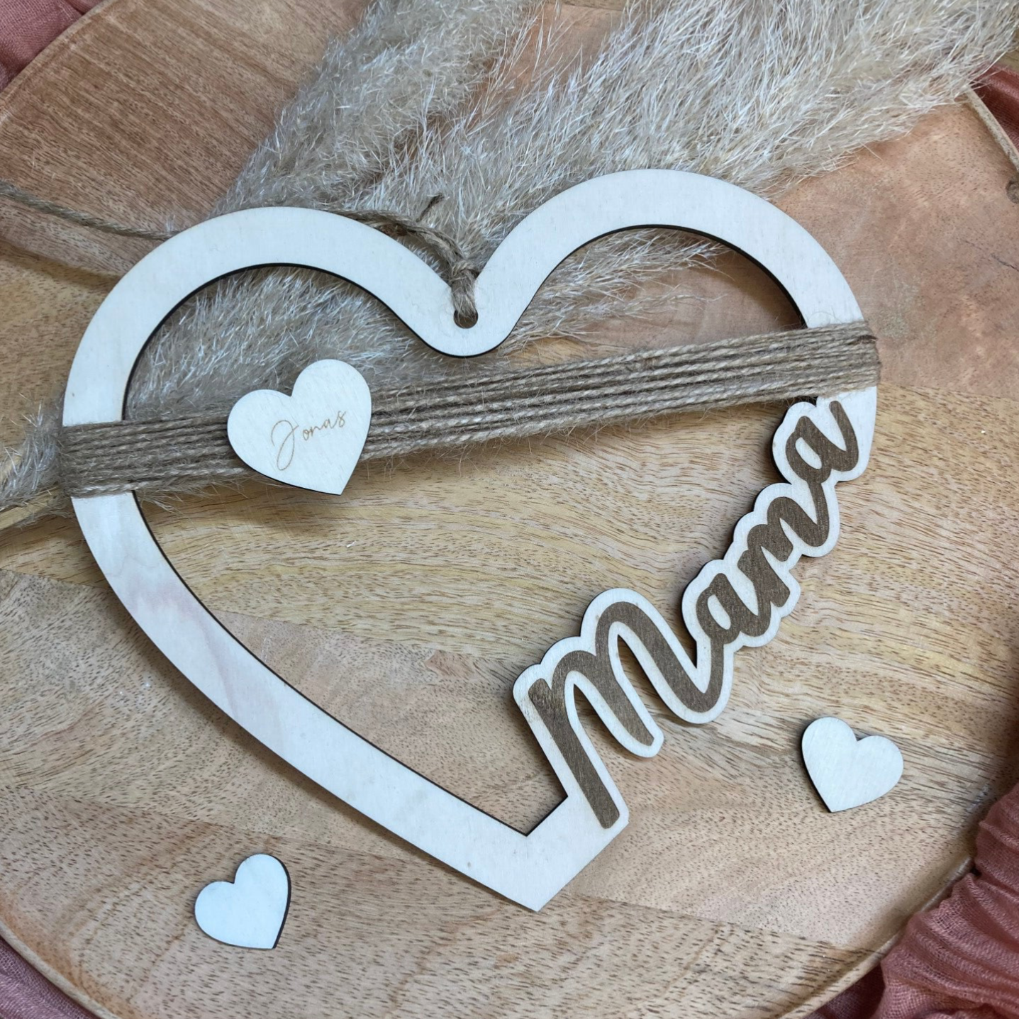 Überrasche deine Mama mit einem ganz besonderen Geschenk! Dieses filigrane Herz aus Holz ist in zwei Varianten erhältlich und lässt sich liebevoll personalisieren: