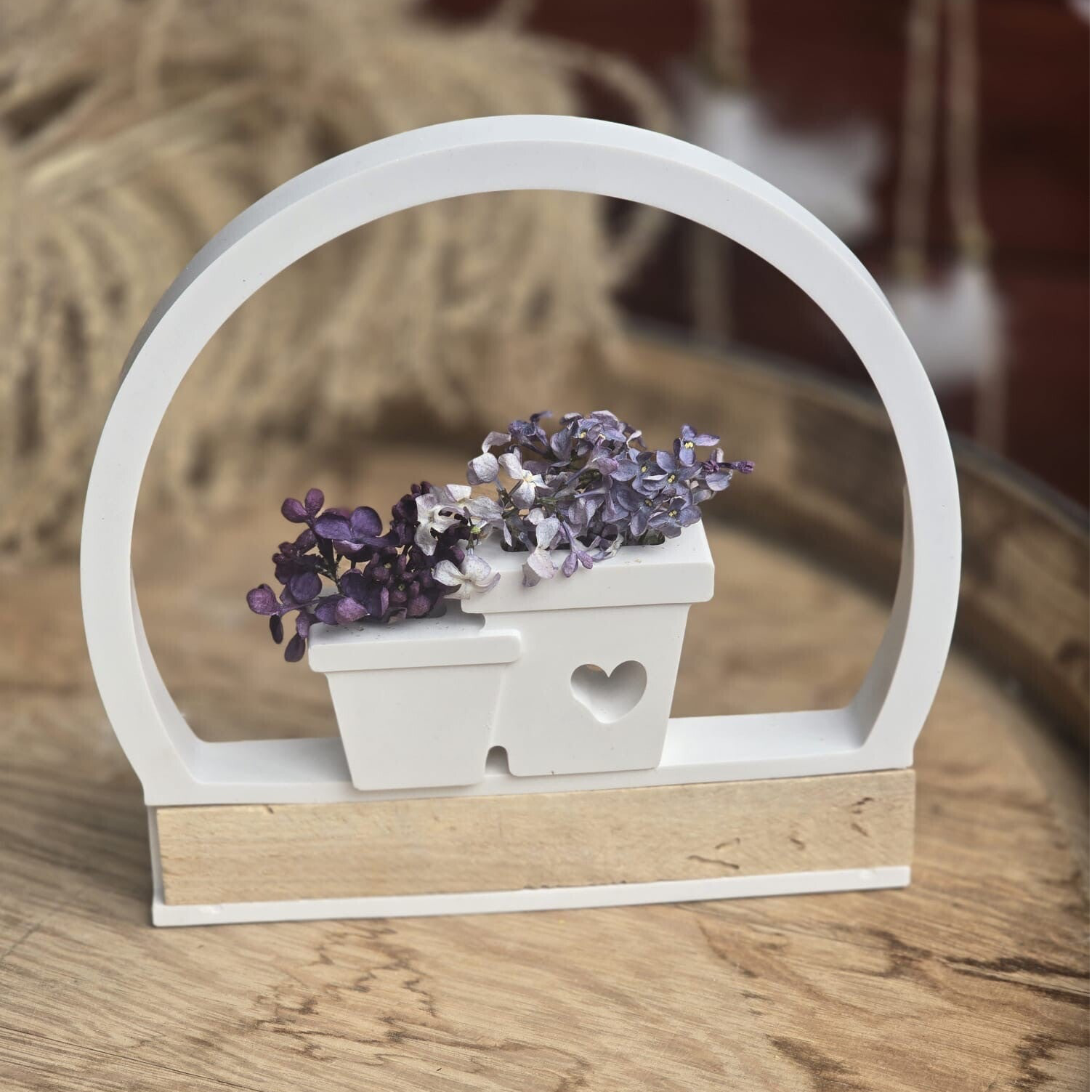 Unser stilvoller Deko-Ring verbindet zarte Eleganz mit persönlicher Note. In der Mitte sitzt ein filigranes Pflanzgefäß mit liebevoll arrangierten Trockenblumen, eingerahmt von einem schlichten, modernen Ring. Das Highlight: Das Holzelement kann mit einer individuellen Gravur versehen werden – perfekt für Namen, ein besonderes Datum oder eine kleine Botschaft.