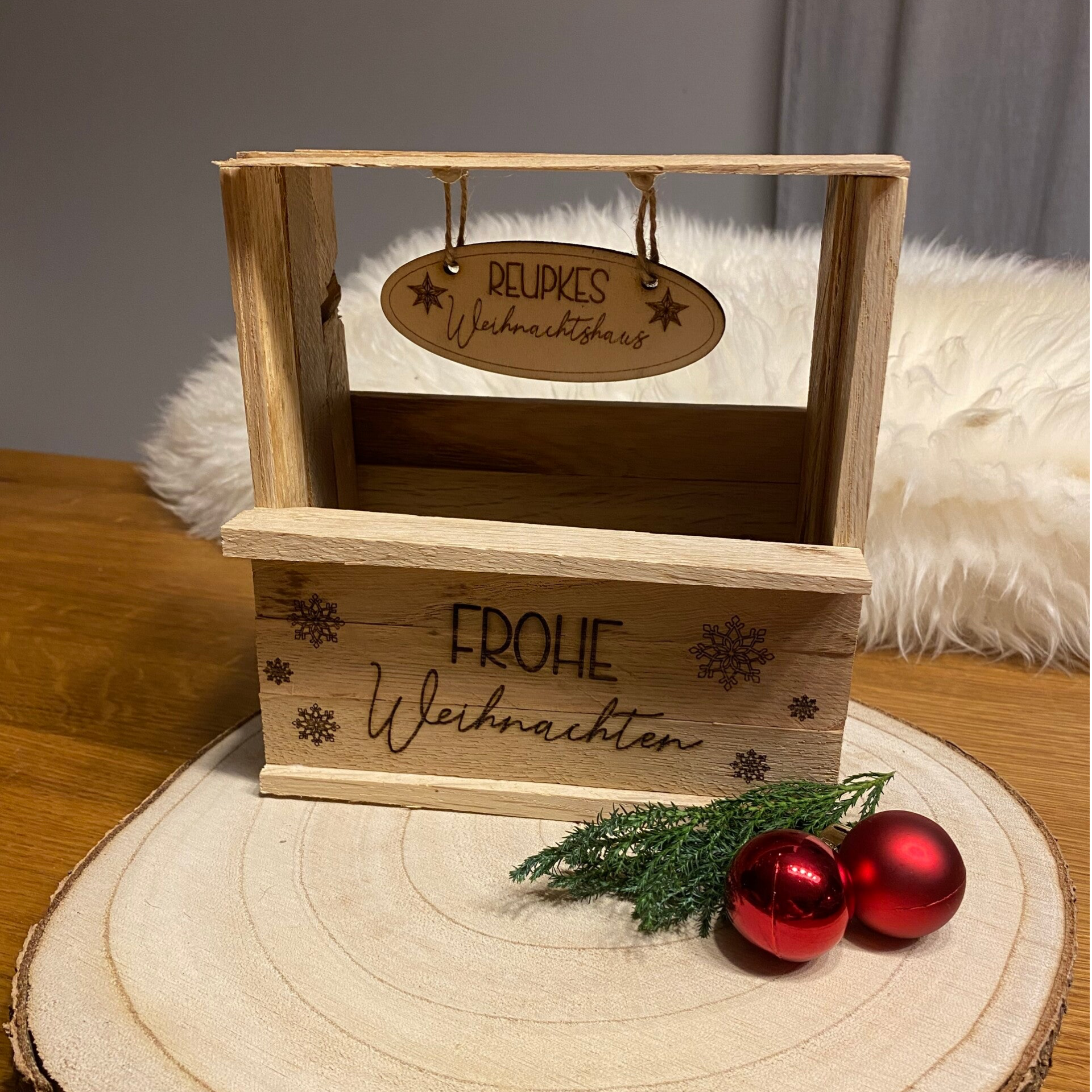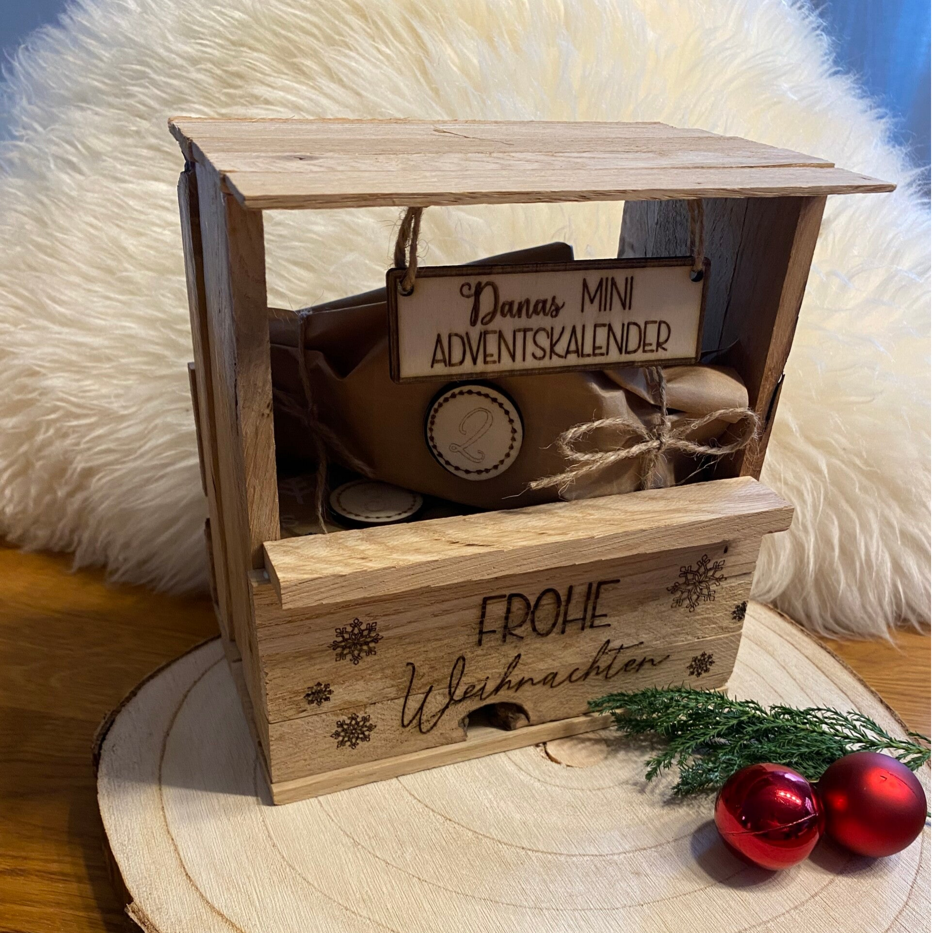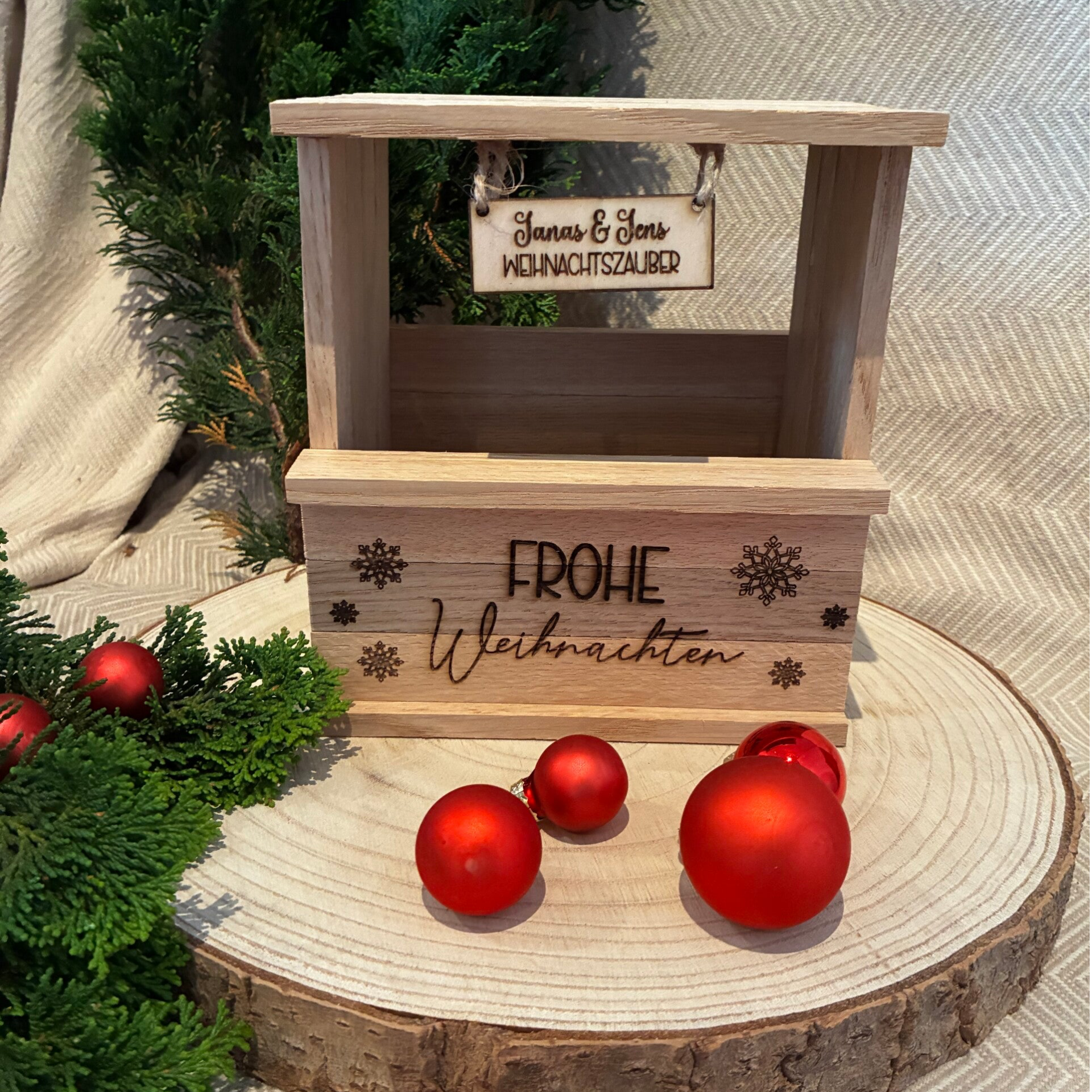 Diese liebevoll gestaltete Holzbox mit Gravur ist die perfekte Basis für deine individuelle Weihnachtsüberraschung!