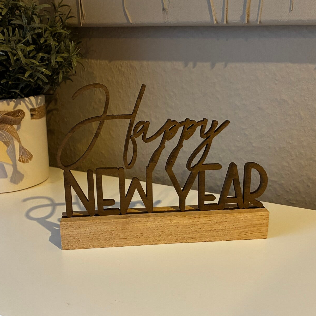 Holzaufsteller „Frohes Neues / Happy New Year“ – moderne Neujahrsdeko